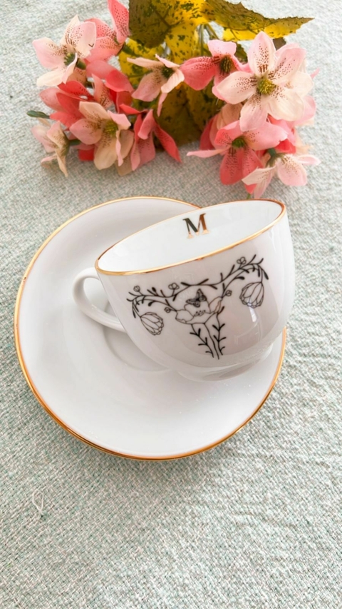 Xicara e pires de porcelana, ideal para presente ou uso próprio.